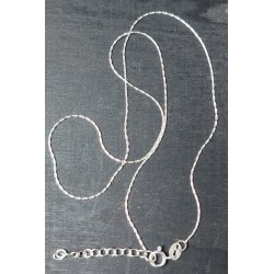 Chaîne en argent 925 dit vert (recyclé). Epaisseur 0.6 mm, longueur 40 cm avec 3 cm d'extention. Totalement hypoallergénique.