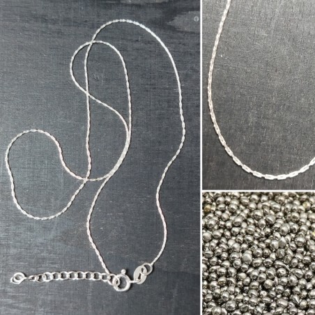 Chaîne en argent 925 dit vert (recyclé), longueur: 50 cm avec 5 cm d'extention. Epaisseur de 0.8 mm. Totelement hypoallergénique.