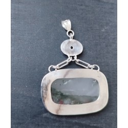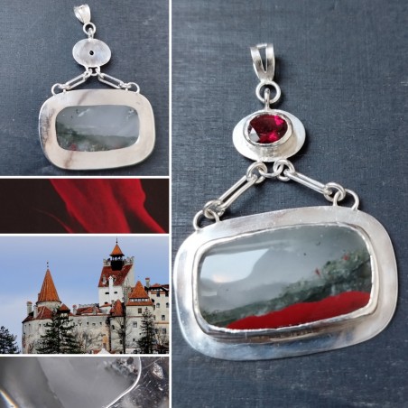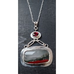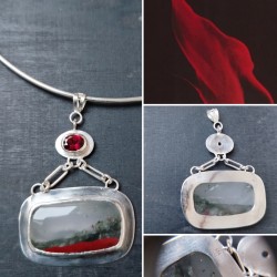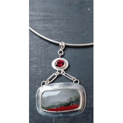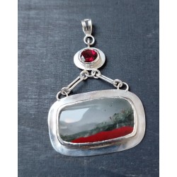 CARPATES, pendentif en argent 925, grenat facetté et jaspe sanguin.