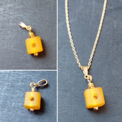 P'TITS CUBES JAUNES, pendentif en argent 925 doré à l'or fin et cube Swarowski.