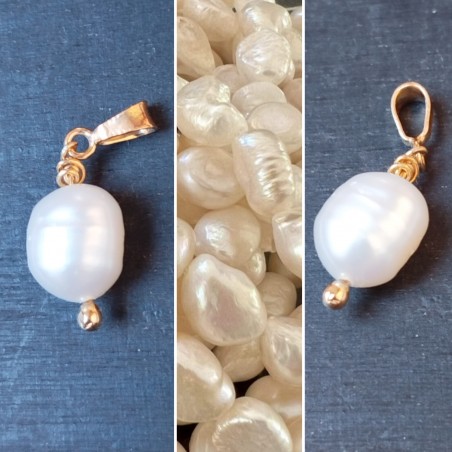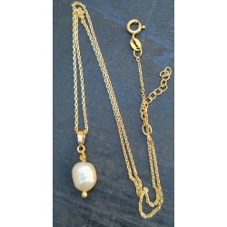 LES NACRES, Pendentif en argent 925 doré à l'or fin et perle d'eau douce.